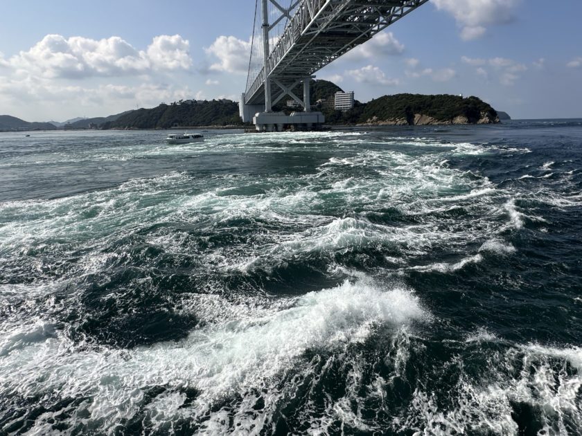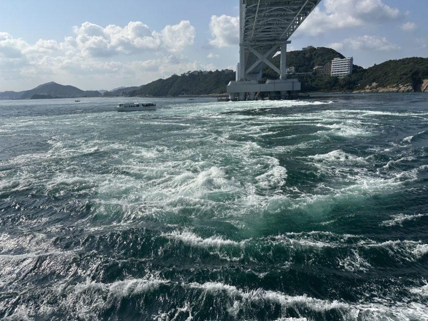 この日はうずしおの期待度が二重丸の日ということもあり、期待を胸に港を出航。鳴門海峡に近づくと海面がぐるぐると動き始め、目の前で渦が巻く瞬間は本当に迫力がありました。