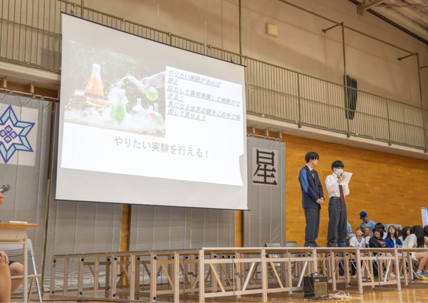 在校生による新入生への歓迎の意を込めて、クラブ紹介が行われました。